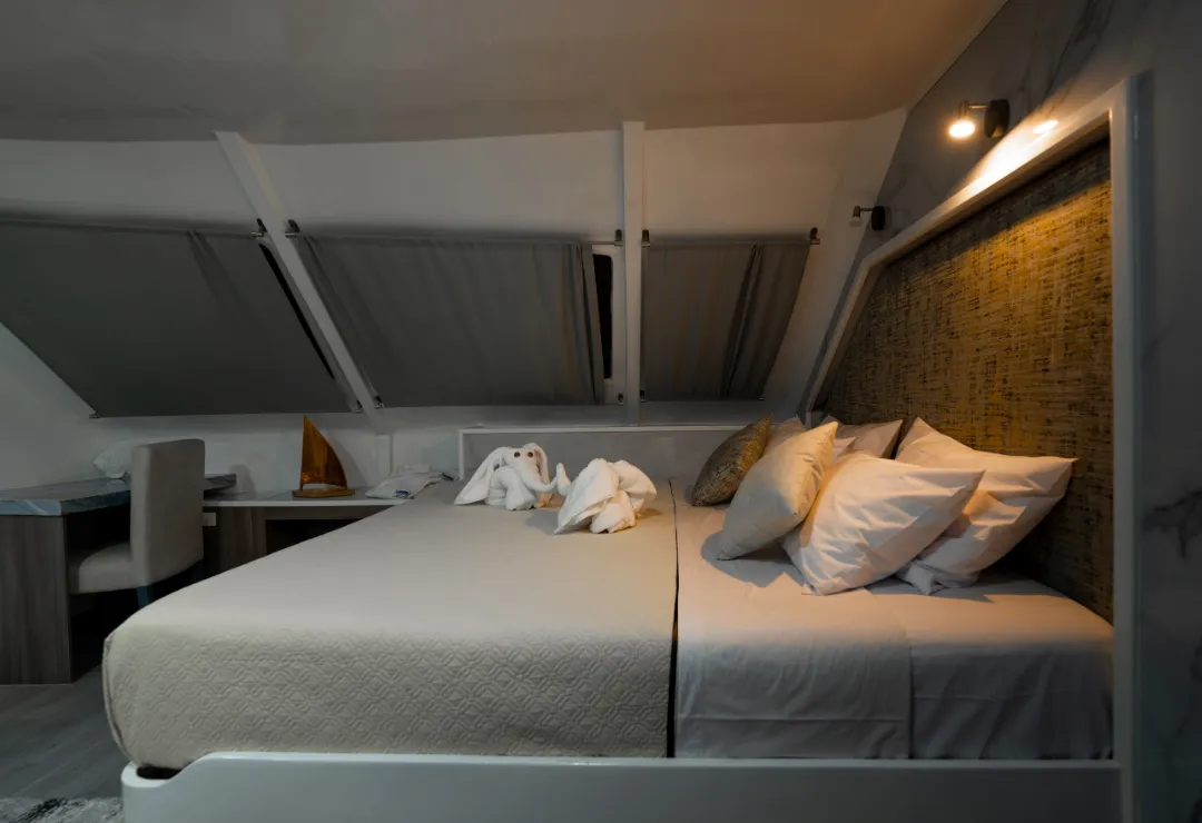 Step aboard the Anahi Galapagos Cruise and explore the archipelago with the smooth stability of a first-class catamaran. With capacity for just 16 guests, Anahi blends privacy and comfort across 8 ocean-view cabins—six spacious twins on the main deck and two suites on the upper deck—each with a private bathroom, hot water, air conditioning, and thoughtful amenities. Between landings, unwind in the lounge and dining area, enjoy sunsets on the sun deck, or relax in the sea-view jacuzzi. Well-paced programs of 4, 5, and 8 days reveal iconic wildlife and landscapes, with options to extend your experience to fit your schedule. Charter options make it easy to tailor the journey for families or small groups. On board you’ll find attentive service, fresh flavors inspired by the islands, and a welcoming atmosphere that keeps the focus on discovery. With smart layouts, calm navigation, and intimate group sizes, the Anahi Galapagos Cruise delivers a Galapagos islands Cruise experience where each day flows effortlessly and every landing brings you closer to the wonders of the Galapagos.