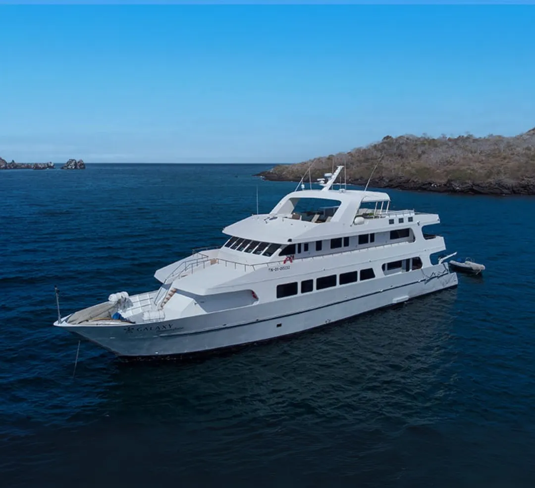 Step aboard the Galaxy Galapagos Cruise and explore the archipelago with the ease of a modern small-ship expedition. Designed for just 16 guests across 8 bright cabins, Galaxy blends privacy, comfort, and front-row views: panoramic windows keep lava shores and turquoise bays in sight while you unwind between outings. A welcoming lounge, bar, dining room, and open solarium create smooth transitions from briefings to golden-hour sunsets and stargazing. National Park–certified, bilingual guiding turns every landing into a story—clear explanations, practical tips, and time to absorb what you’re seeing. Daily programs pair signature visitor sites with unhurried pacing, so hikes, beach time, kayak or paddleboard sessions, panga rides, and snorkeling feel relaxed yet purposeful. In the galley, Ecuadorian-inspired cuisine—thoughtfully adapted for vegan, vegetarian, pescetarian, and gluten-free travelers—keeps energy high without fuss. Add reliable WiFi and attentive crew hospitality, and your Galapagos islands Cruise becomes simple to plan and rich to experience. For comfort, clarity, and meaningful encounters, Galaxy Galapagos Cruise is an iconic way to see more and savor every day.