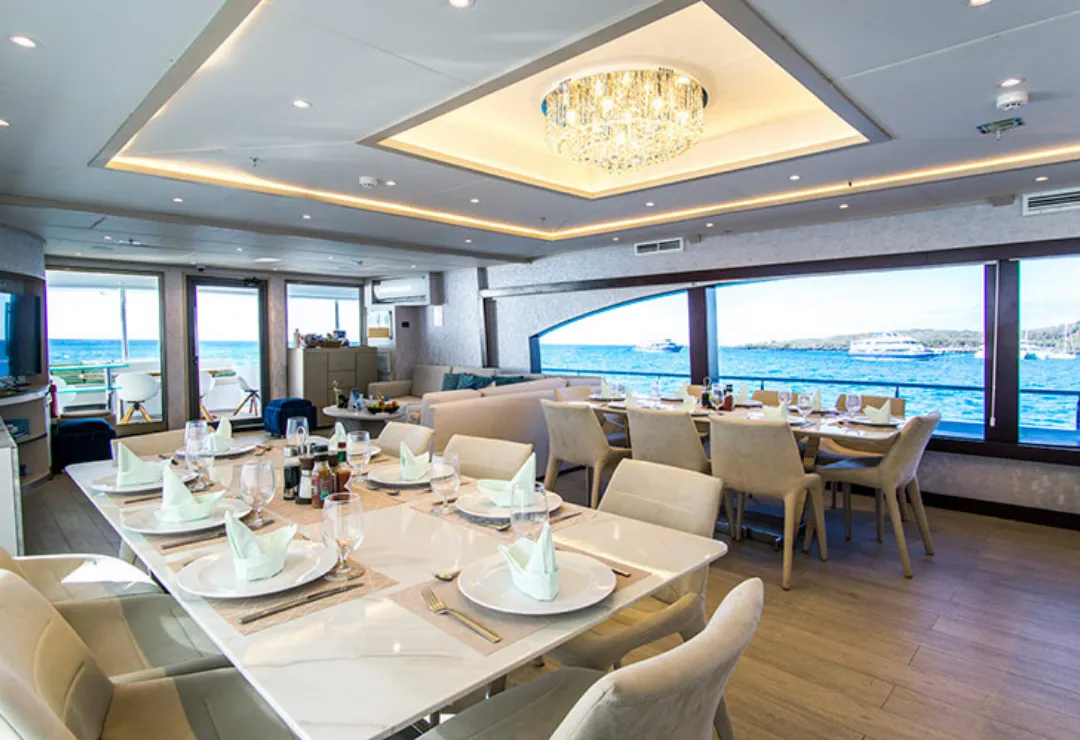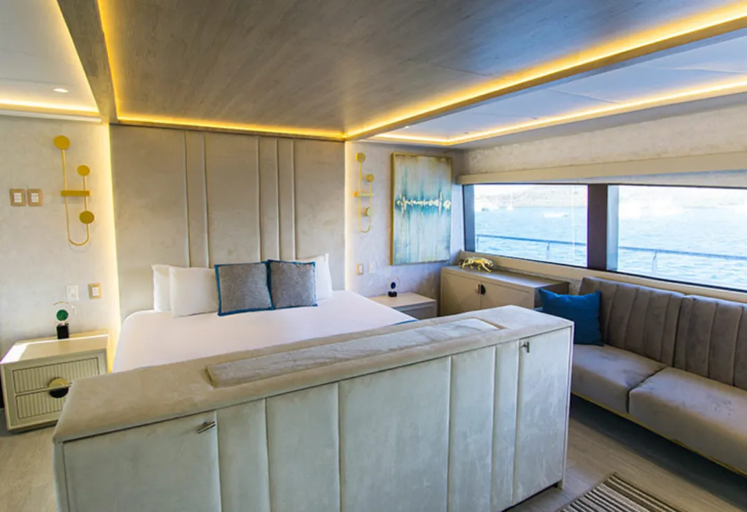 Step aboard the Grand Majestic Galapagos Cruise and experience a contemporary luxury yacht crafted for small, sophisticated groups. Modeled on classic American yachts with a modern twist, Grand Majestic pairs sleek design with attentive, high-touch service. A spacious Master Suite and elegant social areas set the tone for relaxed days and memorable evenings, while panoramic decks keep wildlife and volcanic horizons always in view. Certified naturalist guiding brings each landing to life with clear briefings and insightful storytelling, so every walk, swim, and beach stop feels purposeful. Hand-crafted 4, 5, and 8 day programs are planned to maximize time at iconic sites with efficient navigation that minimizes backtracking. On board, open dining and lounge spaces make it easy to connect with fellow travelers or enjoy quiet moments between outings. From seamless logistics and polished crew hospitality to the yacht’s agile performance, everything is designed to keep the focus on discovery and comfort. For travelers seeking a refined Galapagos islands Cruise with style, pace, and precision, Grand Majestic delivers an effortless way to see more and savor every