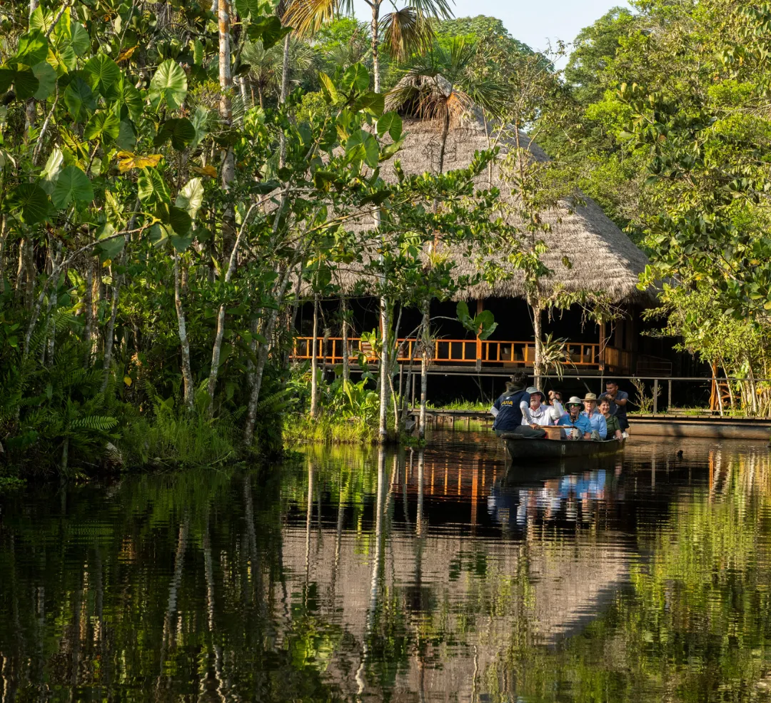 Sacha Eco Lodge is a luxury hideaway deep in Ecuador’s Amazon Rainforest. Reached from Coca by motorized canoe, it blends refined comfort with full jungle immersion. Expect spacious wood and glass cabins with balconies, forest views and the rare convenience of in-room A/C, gourmet cuisine, and expert naturalist guides together with native Quichua guides. Days unfold on the panoramic tower and the innovative Sacha Viewing Crane that lifts you quietly into the treetops for close wildlife encounters. Birding is world class with macaws, toucans and countless species, plus chances to spot pink river dolphins, join night outings for caiman, and try piranha fishing. Between adventures, unwind in the protected lagoon pool or watch sunsets over Pilchicocha Lake. Four and five day programs balance hiking, canoe outings and cultural moments, ensuring a seamless and low impact experience. At Sacha Eco Lodge every moment connects you to the pulse of the rainforest, comfortably, responsibly and in style.